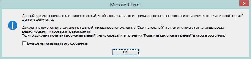 Когда лист помечен как окончательный, в нем недоступны или отключены команды ввода, редактирования и проверки правописания, и лист доступен только для чтения. Команда «Пометить как окончательный» помогает пользователю сообщить о том, что он предоставляет для совместного использования окончательную версию листа. Кроме того, это позволяет предотвратить внесение в лист случайных изменений рецензентами или читателями.