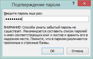 открытии книги необходимо ввести пароль повторно.