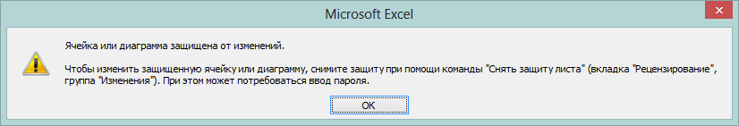При попытке ввнести какие-либо изменения в текущий защищенный лист, появится предупреждение.