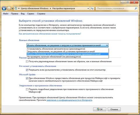Microsoft Windows 7: Пуск → Панель управления → Система и безопасность → Центр обновления Windows: Включение и выключение автоматического обновления → Важные обновления: Устанавливать обновления автоматически.
