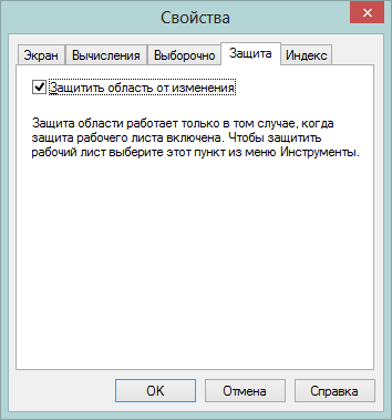 Пункт Защитить область от изменения стоит по умолчанию. Можно снять флажок, чтобы в дальнейшем при включенной защите вносить изменения в объект документа.