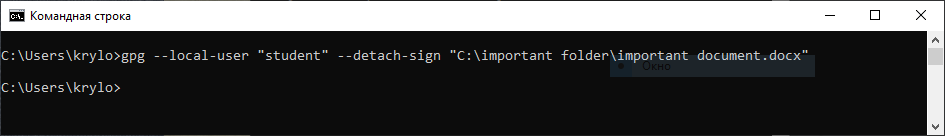Для подписи документа, необходимо ввести следующую команду: